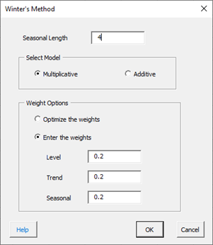 Home » SPC for Excel Help » Analysis Help » Time Series Analysis Help » Winter’s Method Help