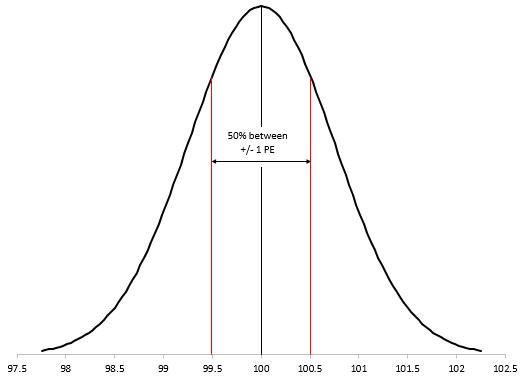 What is special about the value of PE? The PE defines the middle 50% of the normal distribution as shown in Figure 5.
