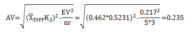 where K2 is a constant that depends on the number of appraisers. For 2 appraisers, K2 is 0.7071. For three appraisers, K2 is 0.5231 For this example: