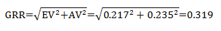 %GRR = 100(GRR/TV) = 100(0.319/0.9285) = 34.3%