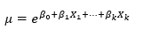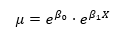 where is the expected number of visits and the are the coefficients. You can take the exponential of both sides to get: