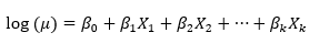 The basic Poisson regression model uses a logarithmic link and is given by: