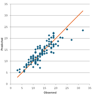 There are also other charts that can be produced including a normal probability plot and a plot of predicted versus actual values. This plot is shown in Figure 2 .